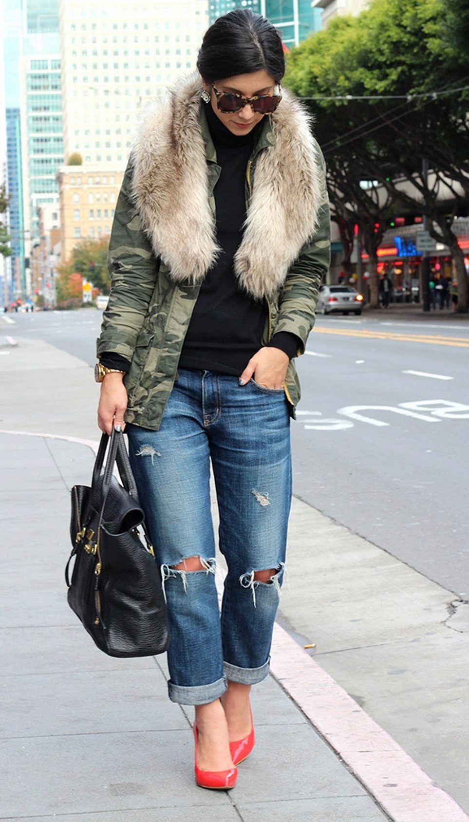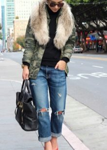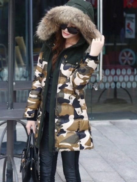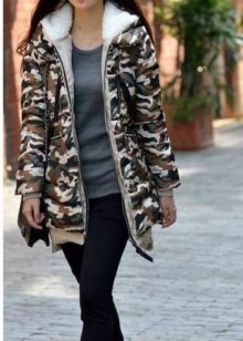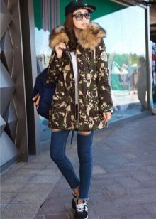 Camouflage parks with mink, fox or arctic fox fur are very popular. They look luxurious, rich and stylish. A more affordable option is a jacket with faux fur lining. Such models are perfect for the embodiment of a stylish street look or for socks for every day.