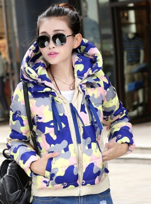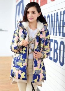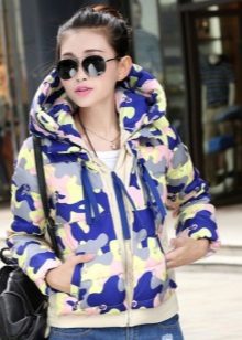 When choosing models of military style jackets do not dwell only on green tones. Girls can afford the same prints, but only in other bright and bold color combinations. For example, a combination of pink, black and blue is suitable for sports.
