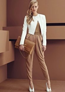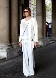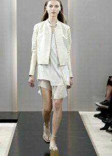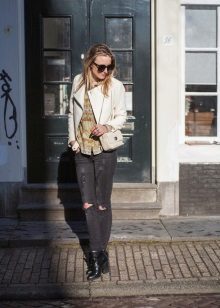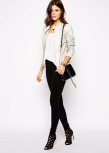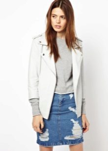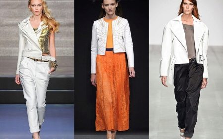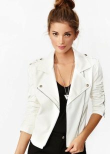 This wardrobe item will look beautiful with comfortable jeans, colorful dresses and skirts, as well as shorts. The combination of a summer sundress and a white leather jacket looks extraordinary. Many fashionable women prefer to combine white model with mini-skirts. A variety of styles allows you to create an elegant and stylish bow business woman.