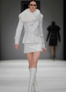 This year the ensemble of a white leather jacket with a bottom of an asymmetrical cut will look very stylish, and the length can be shortened. The original decision will be a military style. The presence of a large number of pockets give the image of originality.