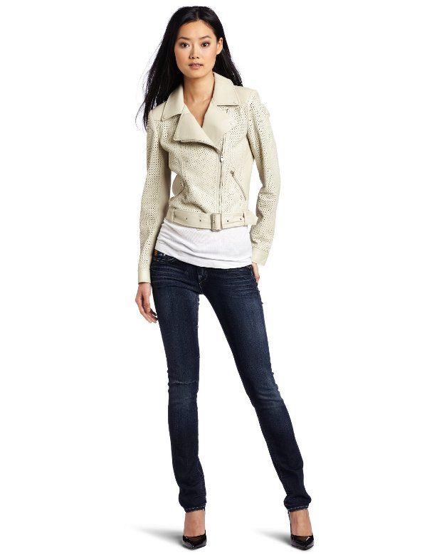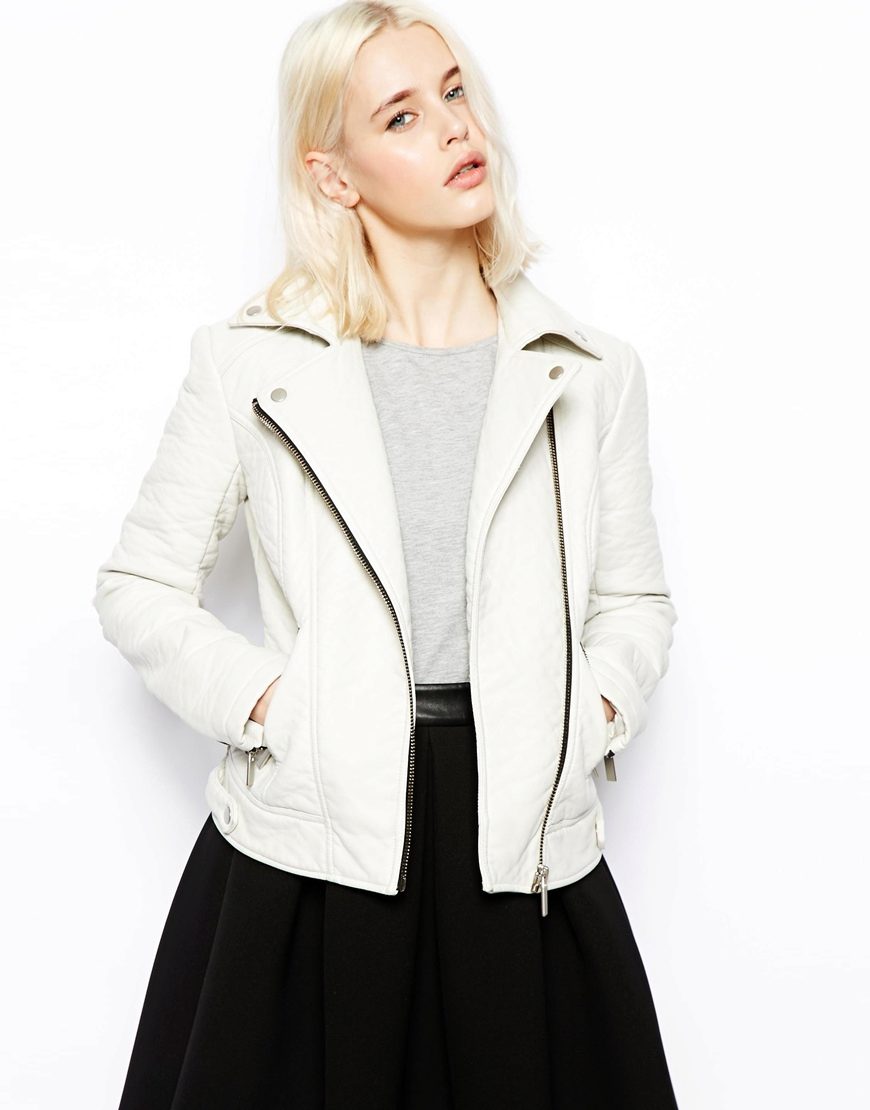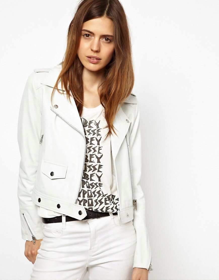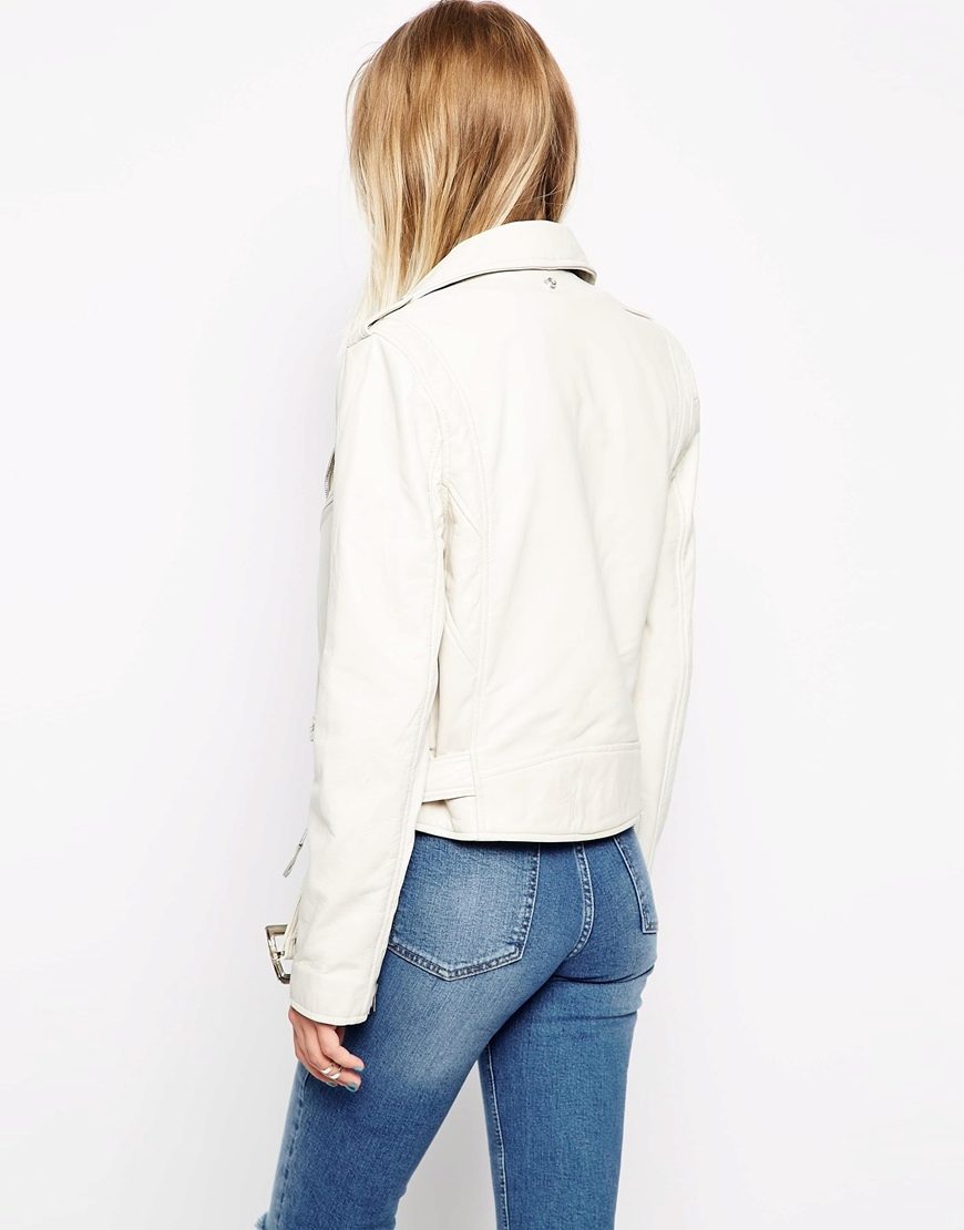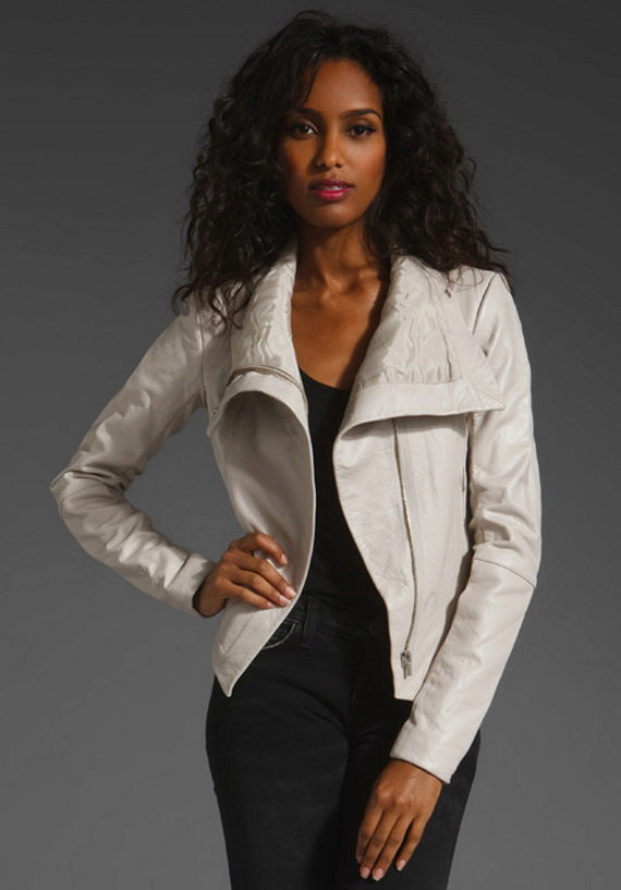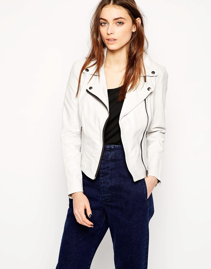 Leather is a natural material that is often present in clothing collections from famous fashion designers. Today, leather jackets are in trend in different colors. White leather jacket looks elegant and stylish.