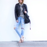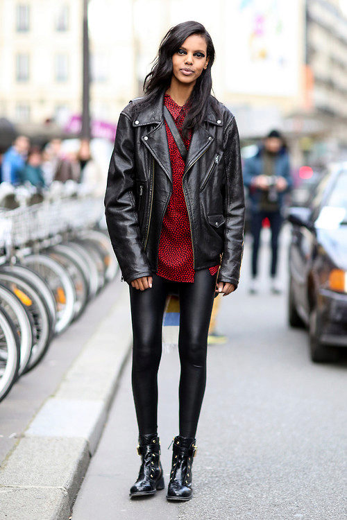 Leather jacket has long been a universal thing that is combined with clothing in a variety of styles - whether it's a romantic dress or sweatpants.