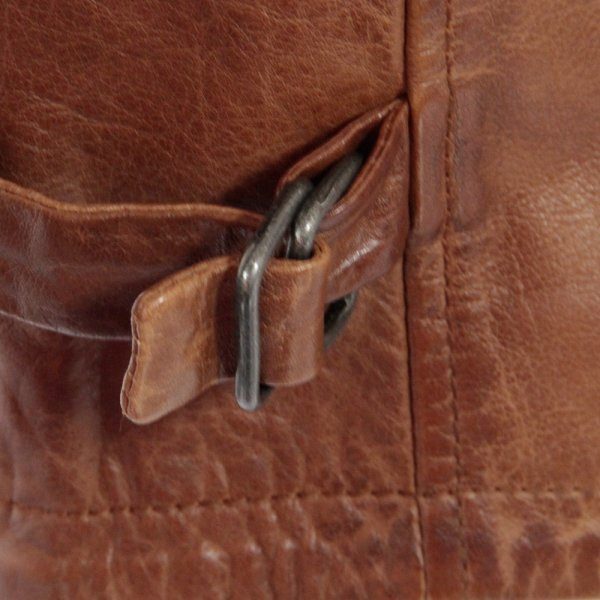 - Buffalo leather goods are often faked, so carefully inspect your jacket before buying.. The thickness of the material should be at least 1 mm (the most high-quality things are sewn from leather with a thickness of about 3 mm). In addition, pay attention to the texture of the material - it should be coarse-grained, and the drawing should not be repeated. Remember that genuine leather has a warm, pleasant to the touch surface.