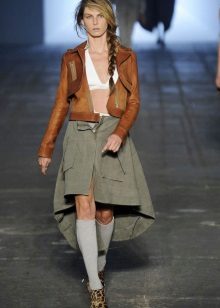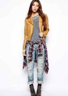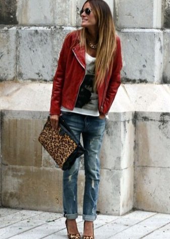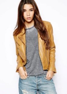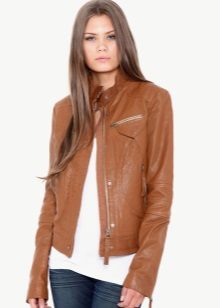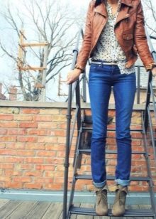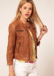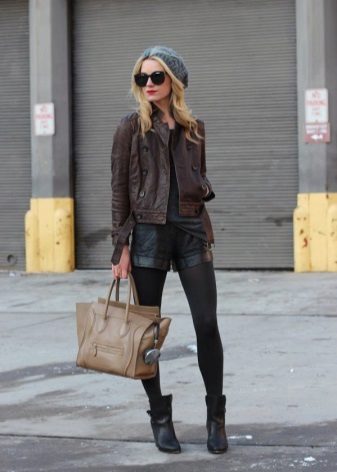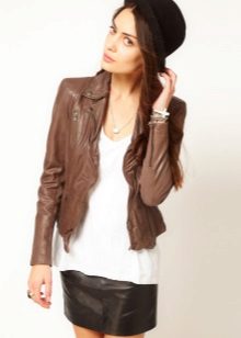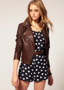 Many girls choose glamor, and here brown leather jacket will become irreplaceable. Pants, shorts or a skirt made of leather will look beautiful with it. When choosing shoes fit ankle boots or boots. Several bright decorations - and you will become the star of the evening.