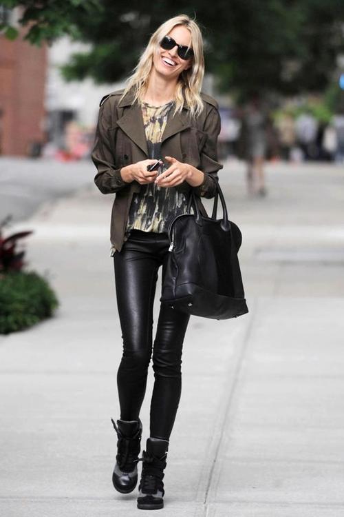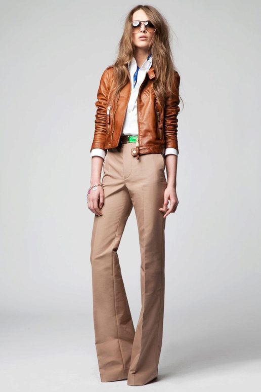 Stylists are advised to pick up shoes to match the brown leather jacket, although exceptions are sometimes possible if you are not a supporter of conservatism in choosing clothes. This year, many designers offer to combine brown leather with shoes of different shades of brown, because all natural tones are beautifully combined with each other.