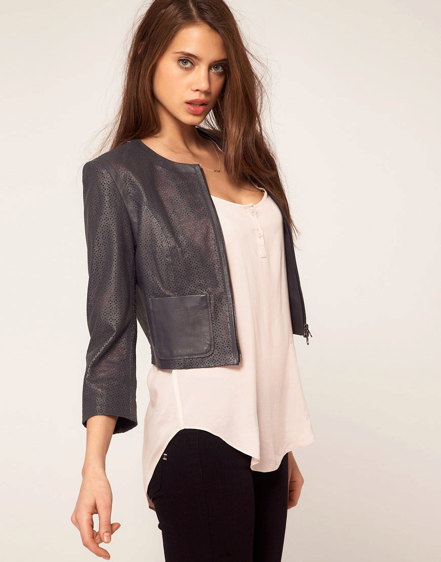 A short leather jacket allows you to create beautiful ensembles for any occasion. Models that have inserts from other materials (fur, wool, tweed or suede) are in great demand.