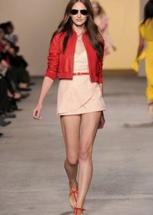 For a bow for every day, a black leather jacket will be very beneficial to look with a bright dress and flared skirt. It is only important that the top was not too lush and voluminous.