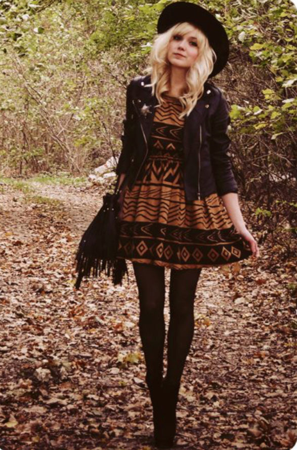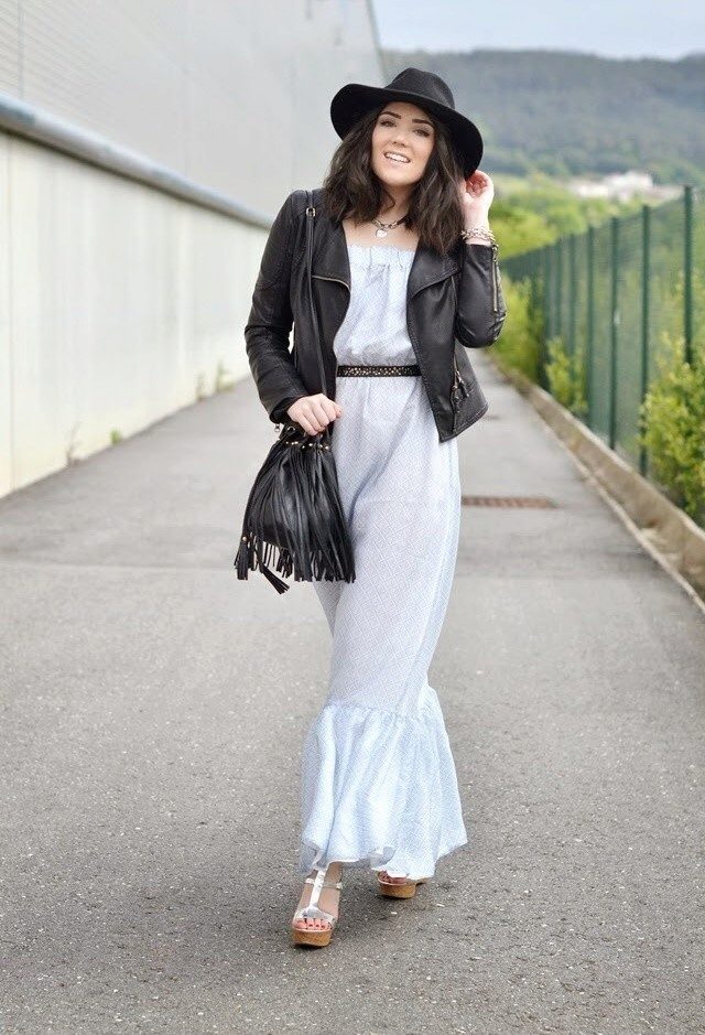 This style is a combination of bohemian and hippie, so this image always stands out from the rest. Leather jackets should be worn with blouses in ethnic style and skirts to the floor in lush styles. Accessories in ethno style will be an exquisite addition.