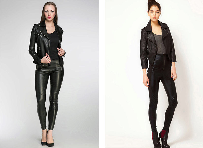 Leather jacket also looks irresistible with skirts of different styles, you can even choose a curvy model. The only rule is that with a fluffy bottom it is necessary to select a fitted top. If the jacket is voluminous, then the skirt should be a straight or tight-fitting cut.