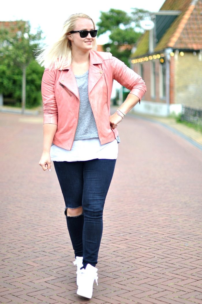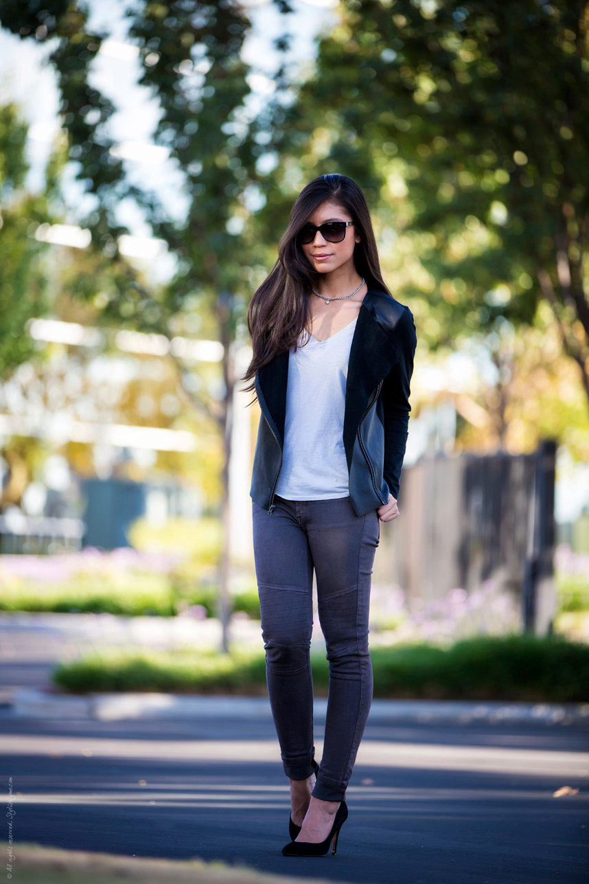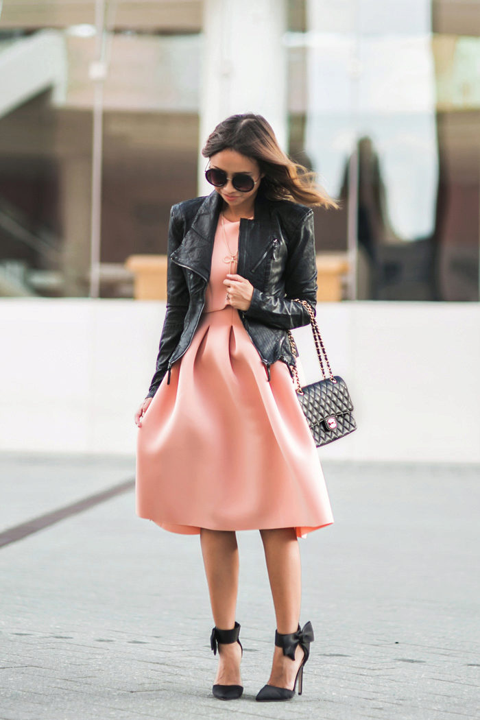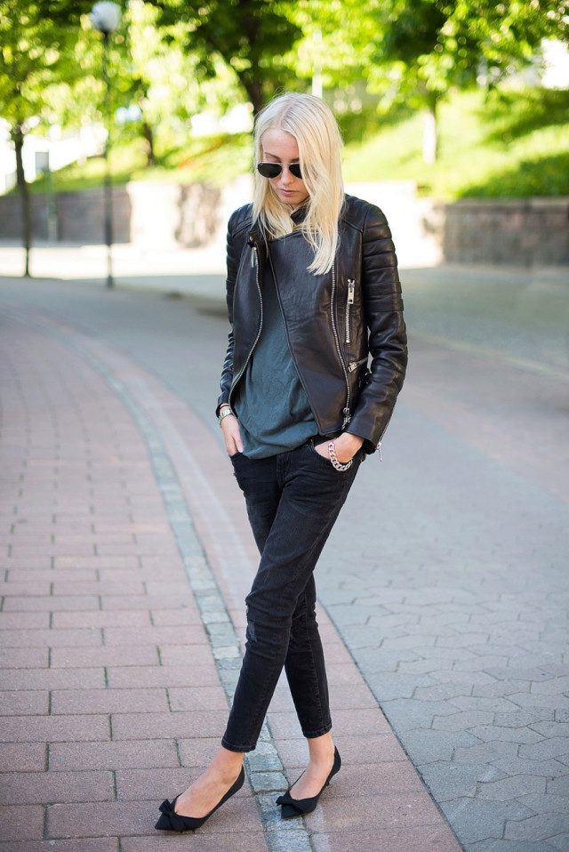 Fashionable bows with leather jacket