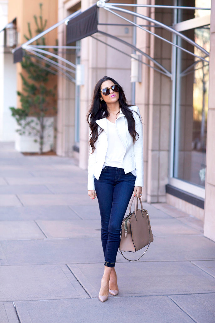 White jacket can be combined with clothes of soft, pastel or bright, saturated colors. Even a completely white outfit will look superb, just need to pick accessories in a contrasting color. For example, a beautiful tandem will be white with red.