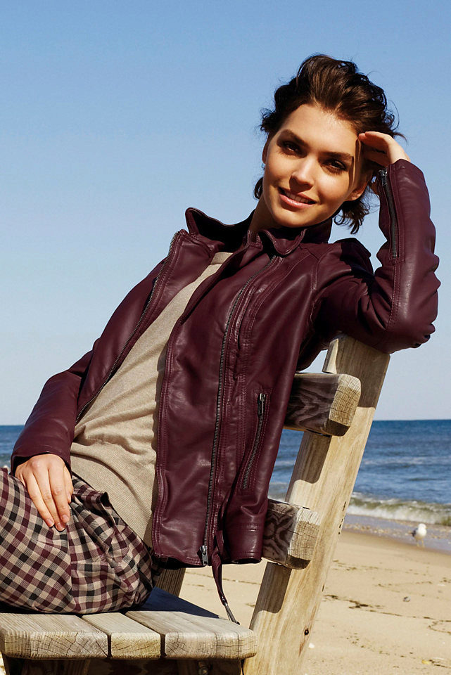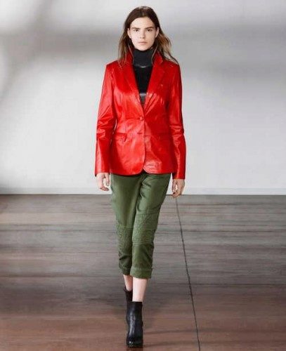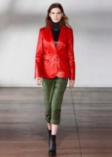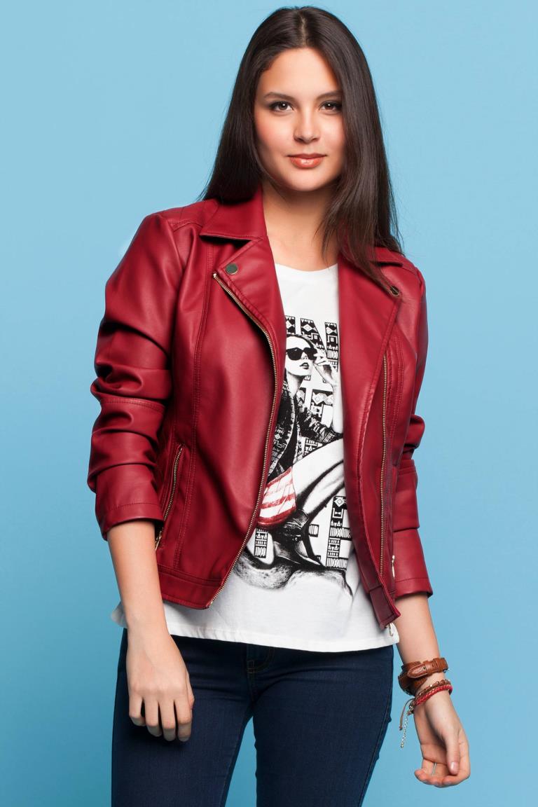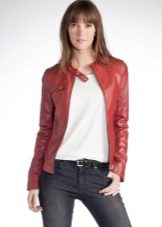 This is a classic leather jacket. It can be in various shades of red. Textured buttons in the tone of a red jacket or a great shade, patch pockets, fur collars or cuffs. Every year designers make jacket jackets more vivid and feminine.