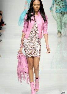 The short jacket is narrowed down. The length of the waist line, the lock is fastened obliquely. Designers decorate the jacket-leather jacket patch pockets, fringe, lacing, spikes. Each of the designers creates their own unique image of a jacket-leather jackets.