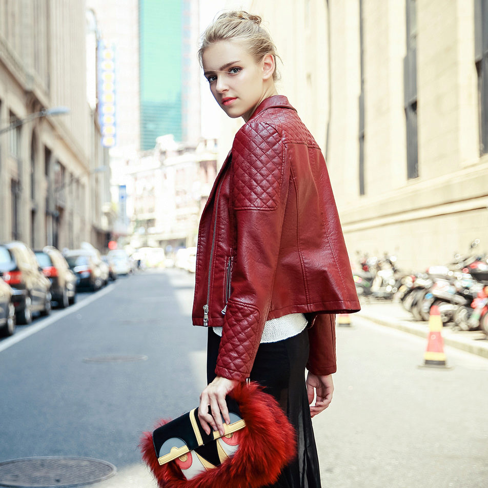 The red leather jacket has gained much popularity due to its versatility. It suits casual style, classic style; women of any age wear it bravely. What should I look for when choosing wardrobe items for a red leather jacket?