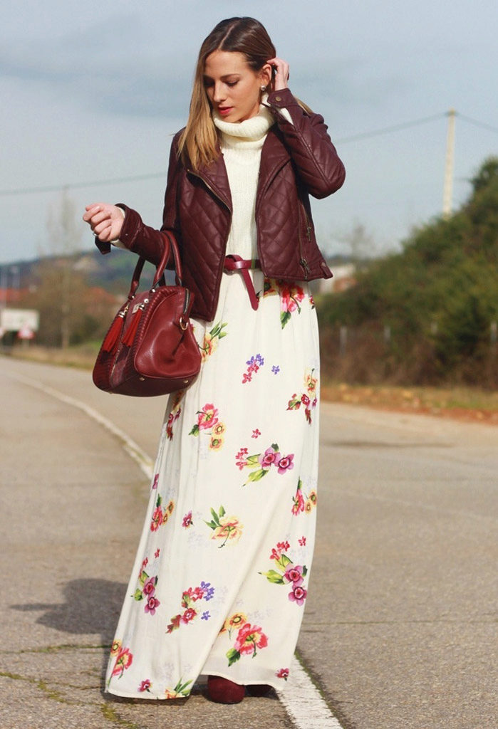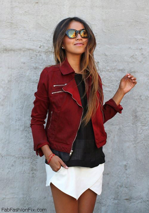- Pencil skirts in classic colors, summer dresses made of chiffon and other “light” materials with a simple ornament look elegant in combination with a red leather jacket. For example, a dress of lace material in the color of "champagne" with a red jacket will show that you are a romantic person.