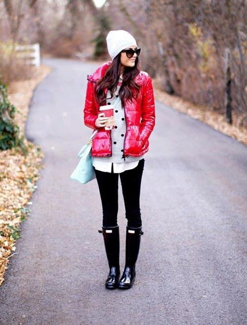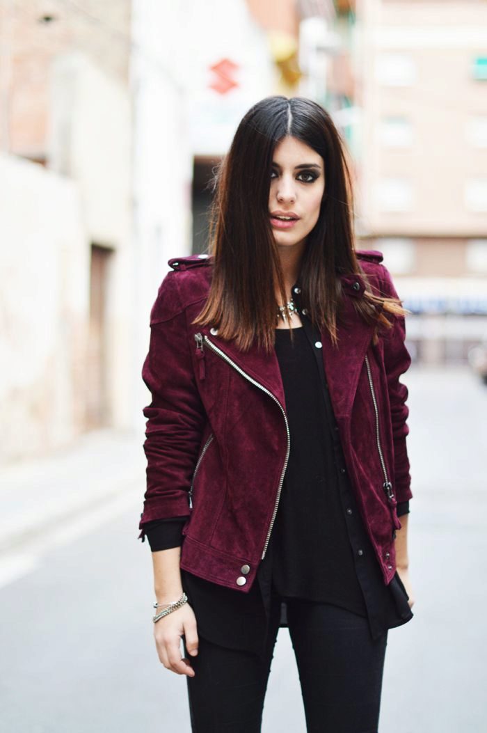 Natural swarthy skin color mutes shades of red, so girls with that skin color should be more careful when choosing a red jacket.