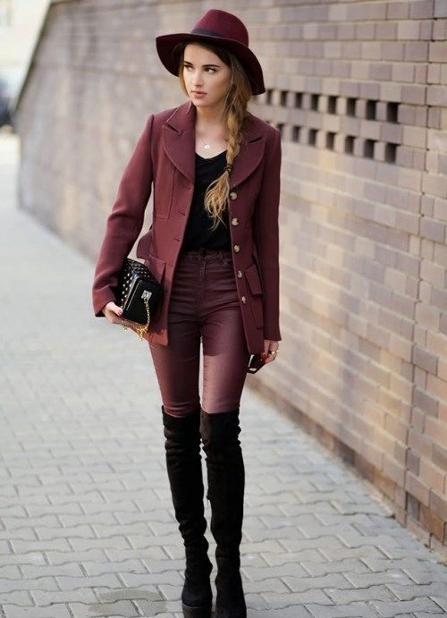 - To create the style of "vamp", give preference to pencil skirts or jeans. The combination of a red leather jacket and black color will add brutality to your image, reminding you that you are a sexy person.