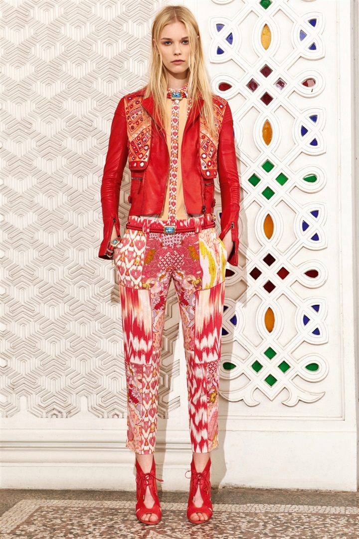 A geometric ornament, flowers or other vegetation on a dress, skirt or trousers will make you stylish