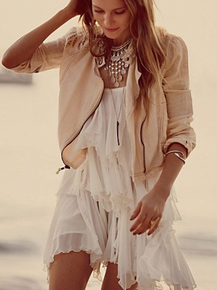 A white dress of “light” fabrics with a red jacket will add romance to your look.
