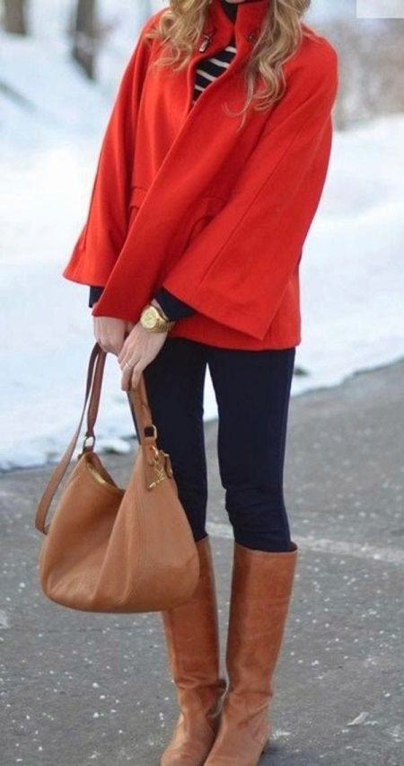 Choosing a bag, remember that the bag in tone with the jacket is a bad form. The combination of a bag and shoes will be perfect. If you can not resist the bag in red, give preference to maroon models.