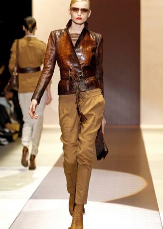 The models from genuine leather and its substitutes are in great demand. With proper care, this material retains a long beautiful appearance, and also keeps its shape. Leather jacket jacket creates a gorgeous tandem with skirts or dresses, jeans or pants. In it, you will always look elegant, elegant and sophisticated.