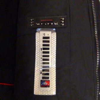 In some models of membranes a thermometer is sewn for easy determination of temperature outside, and on the sleeves there are transparent cuffs