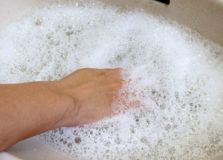 For hand washing, prepare a soap solution from a liquid detergent or laundry soap. Do not rub the membrane with soap!
