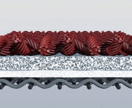 A membrane film and a mesh (inner layer) are applied onto the fabric from the inside. It turns out a kind of "sandwich" of fabric, membrane and mesh. The fabric is light and comfortable as there is no lining.