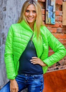 - Light for spring / autumn. Thin jackets on a synthetic winterizer will save from a wind, but thus will not look too volume. Having picked up a suitable style, it can be combined with various things from your wardrobe. This may be a shortened or fitted model, possibly with a short sleeve.