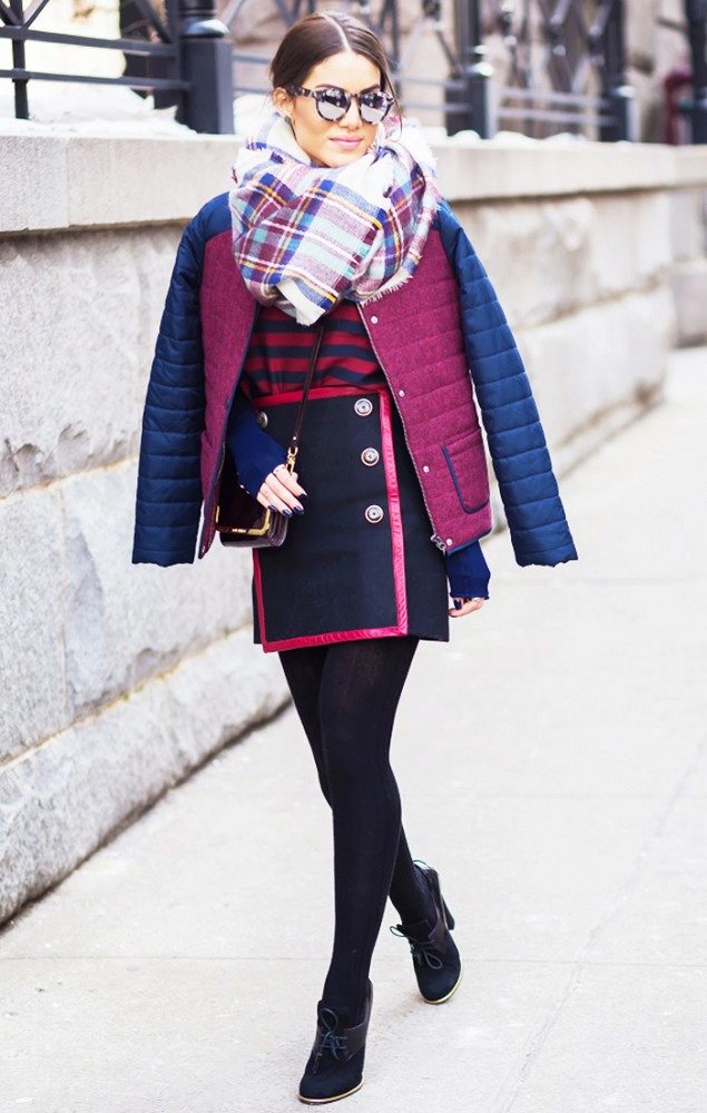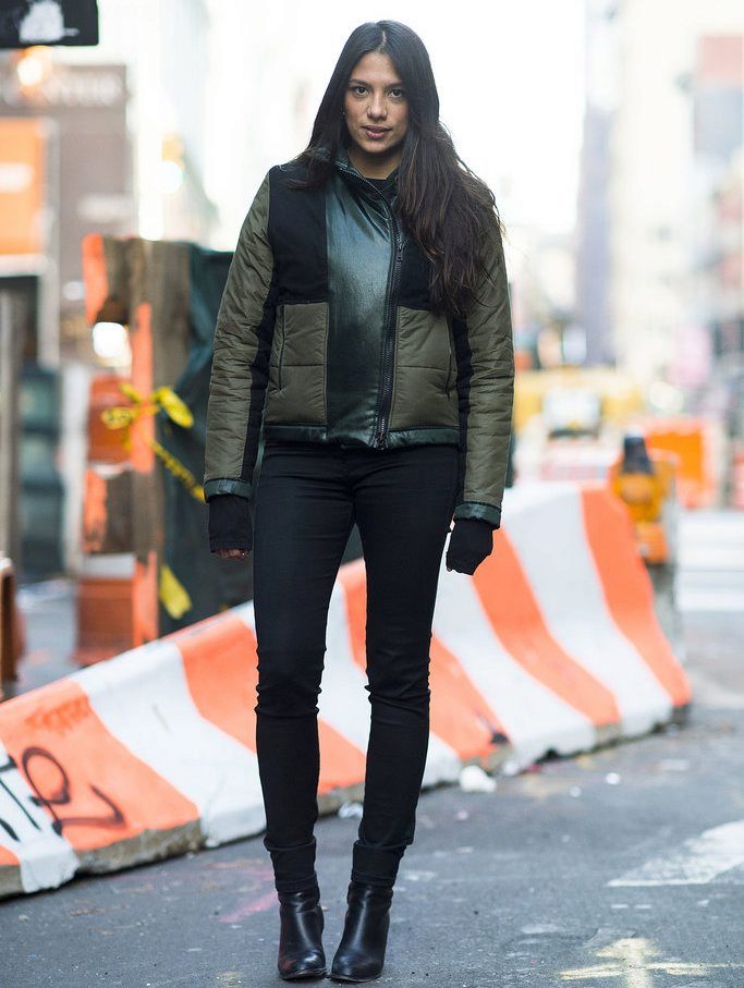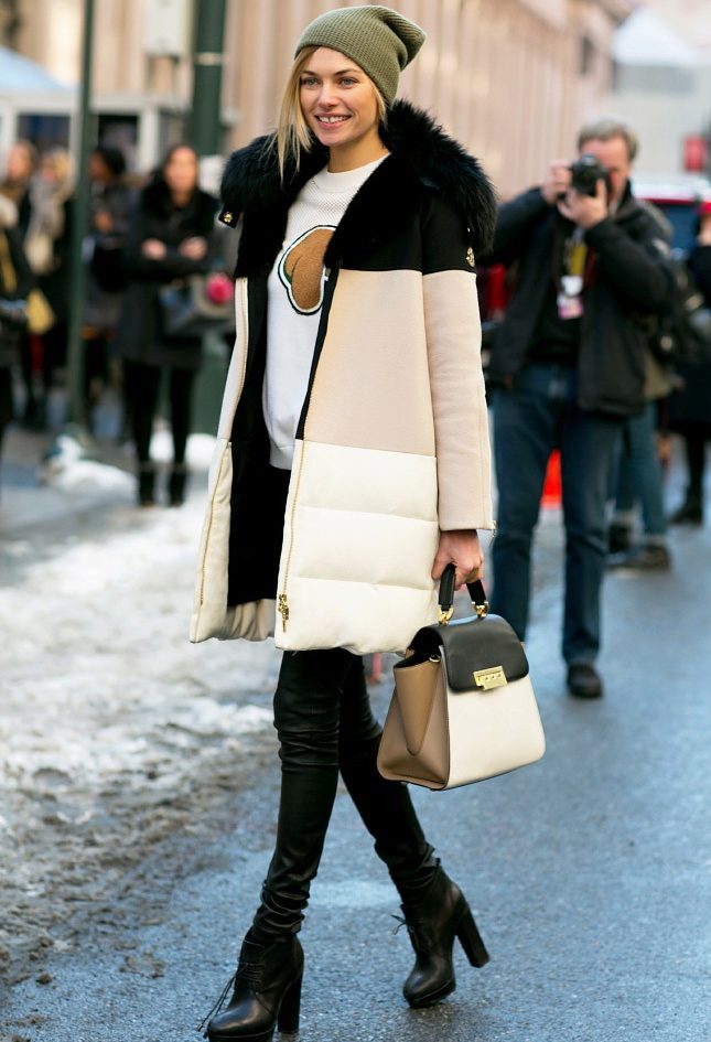 If you prefer practical things, choose a dark jacket - black, purple, maroon, gray, khaki. To give a zest to the image, purchase a model with various textured and multi-colored inserts.
