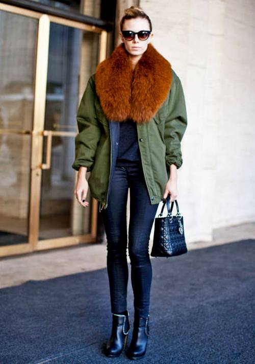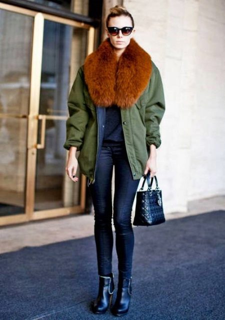 So that the jacket does not look brutal rhyme, it can be diluted with various stripes and fur trim.
