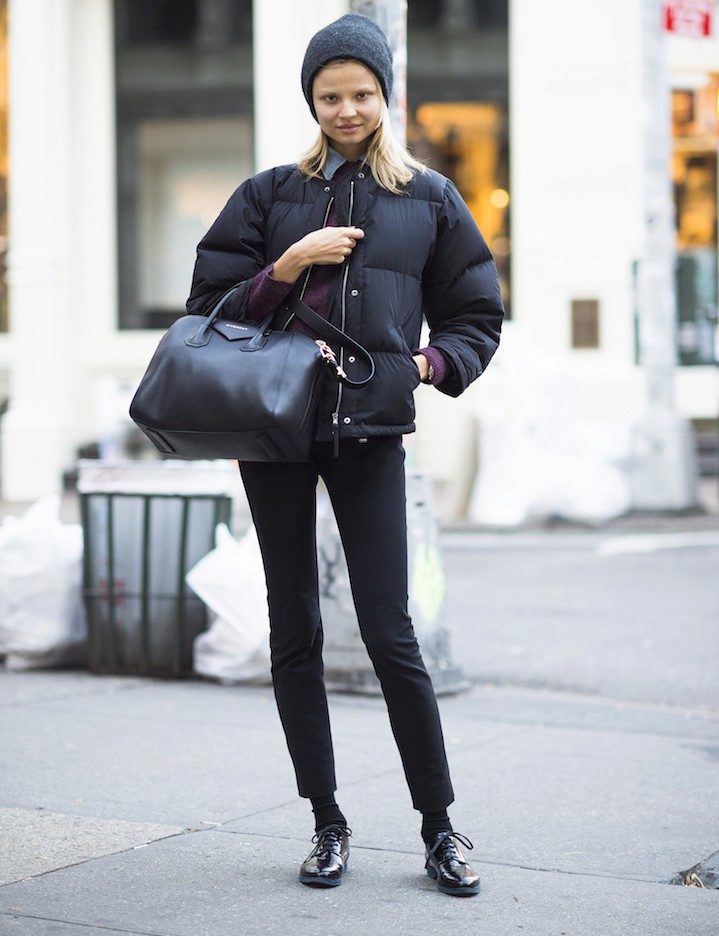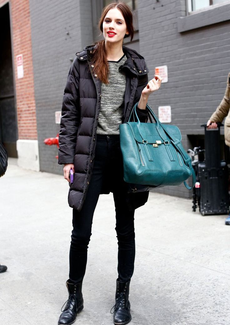 To any of these images you can pick up a bulky bag or a handbag on a long strap. Perhaps, it is worth refusing only models that are customarily worn on the crook of your arm, since voluminous sleeves of a jacket can create certain difficulties.