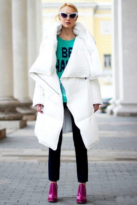 - Elongated. An ideal option for the winter, an elongated jacket just will not let you freeze. You can wear it with pants or fitted skirts, so the model is almost universal.