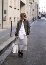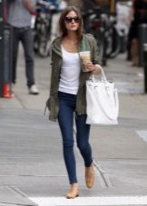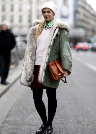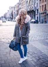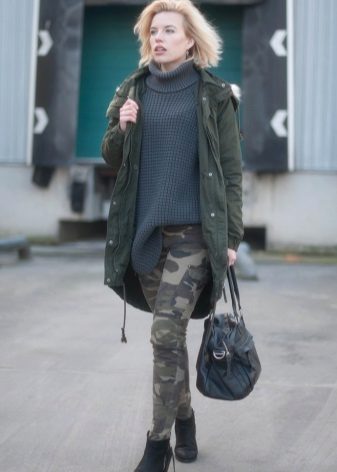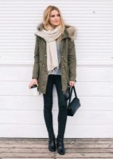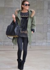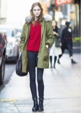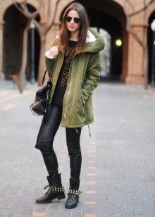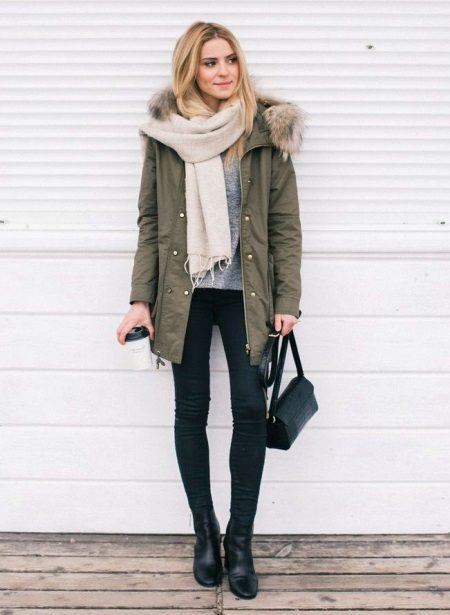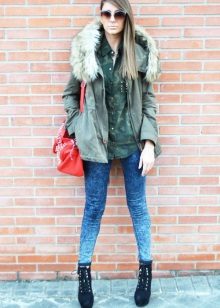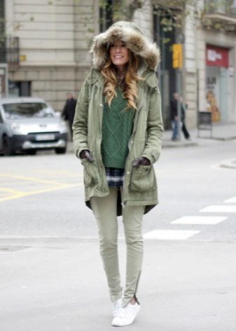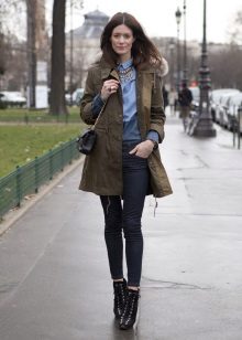 In addition to jeans, the park is often worn with skinny and skinny trousers. Also, this jacket looks good with skirts, the length of which is selected based on the length of the parks.The longer the jacket, the shorter the skirt can be.