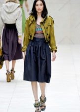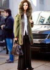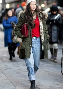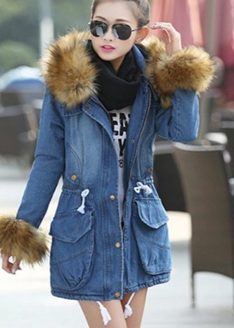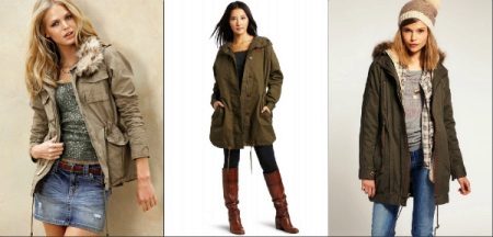 Flared maxi skirts look good with shortened models, and with a long parka you can wear a tight mini. Denim parks are not recommended to wear with jeans, provided that their shade matches.