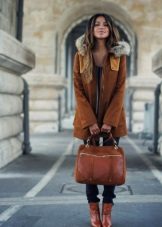 The choice of a bag to a jacket park is caused by the general style of the dress. A casual look allows both bulky bags and leather backpacks to be used. It is undesirable to pick a bag of patent leather, as well as with embossed or with a clear silhouette to the park. The color of the bag should be discreet.