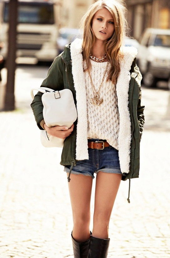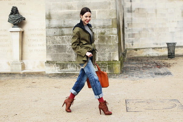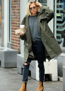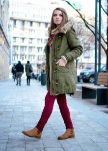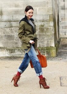 If the park complements a dress or short skirt, pay attention to high boots on a low run or ankle boots on the wedge. Wearing coarse boots to the park, you will create a youth image.