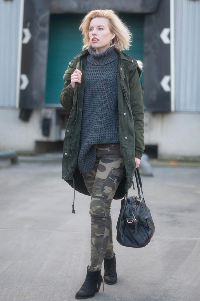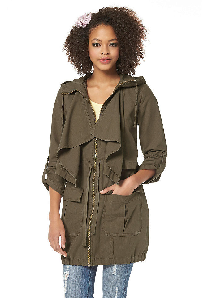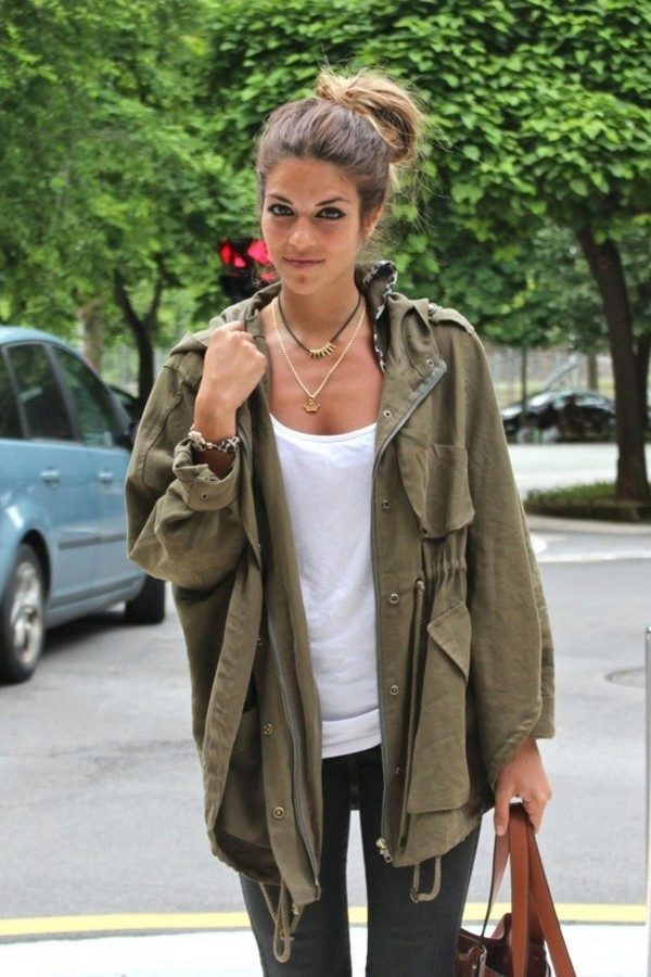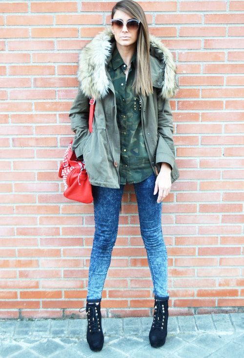 Parks in this style are different khaki or camouflage pattern, straight cut, as well as many pockets (including internal). The length of the military jackets of this type often comes to mid-thigh, but there are also shortened models. They attract with their inconspicuousness and practicality.