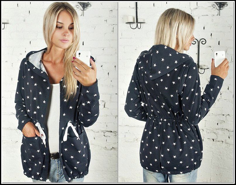 This style looks good on any figure, and to emphasize the silhouette, in a jacket park there are drawers at the waist and along the hem and sometimes on the cuffs. Also, most models have pockets and a zipper.