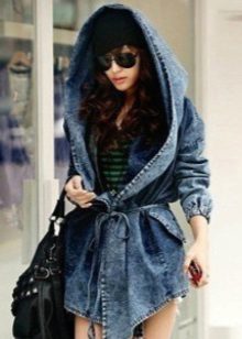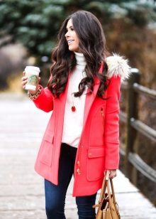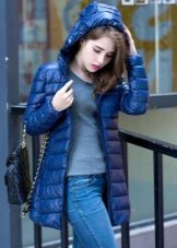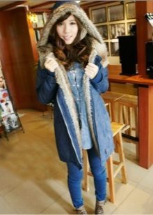 Denim is good because it has a high wear resistance. Jeans looks great in any length - up to the waist, to the middle of the thigh or to the knee - choose to your taste, as well as based on the characteristics of your figure. Jeans goes well with fur, so pay attention to models with a fur collar, hood or cuffs. Knitted elements of contrasting colors are also appropriate in such jackets.