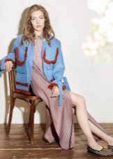 The combination of a blue jacket with a dress with a geometric print or with a beige lace outfit looks tender and romantic.