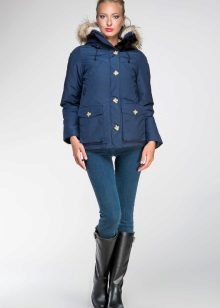 In the dark blue color there are windbreakers and other light jackets, but most often such shades are presented in warm models with a hood and fur trim.