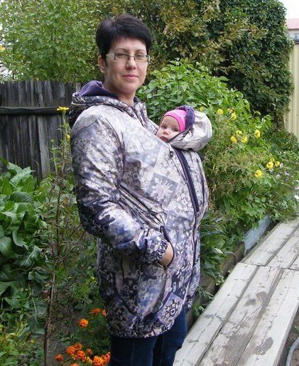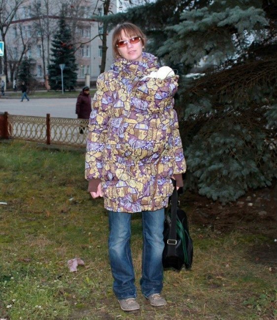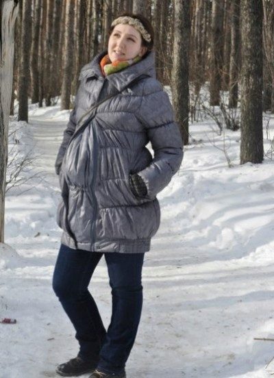In the early stages of pregnancy, the jacket can be worn just like that, it is perfect for a small tummy, but in the later periods you should add an insert to increase the size of the jacket. After the birth of the baby, a slingovstavka and a baby hood are useful.