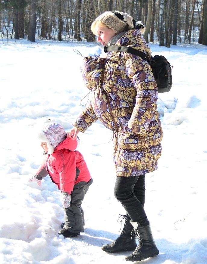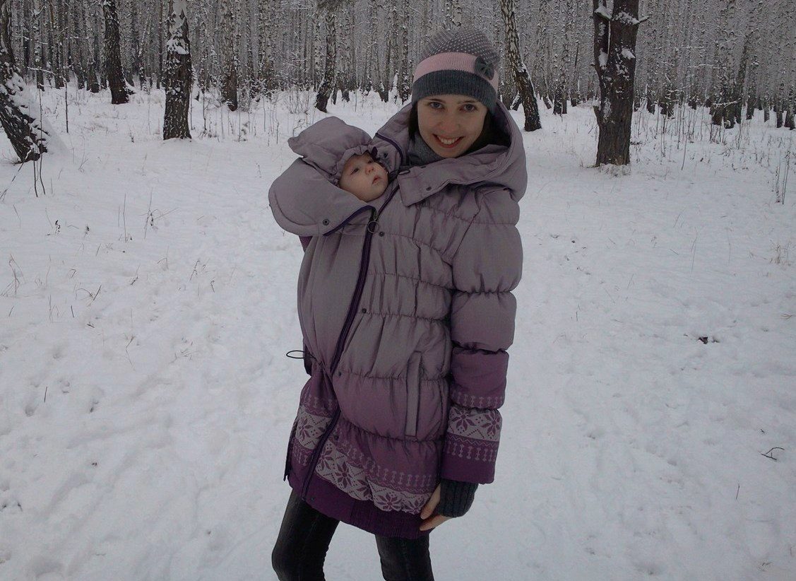 There can be two answers - or get an assistant, or buy a convenient and practical slingokurt. It will warm the mother and baby, protect from wind and snow. With her fees will take a few minutes, and winter walks will bring only pleasure.