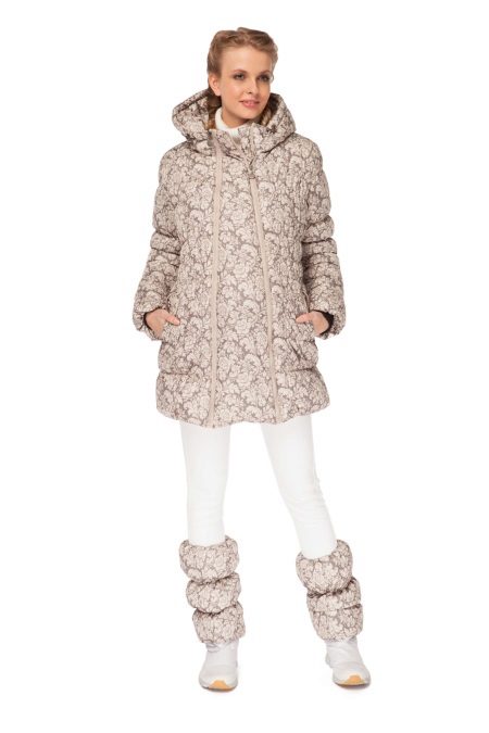The jacket has a good comfortable length, there is a rubber band at the bottom, wide cuffs on the sleeves, there is also a deep comfortable hood - all this will protect mother and baby from wind, snow and bad weather.