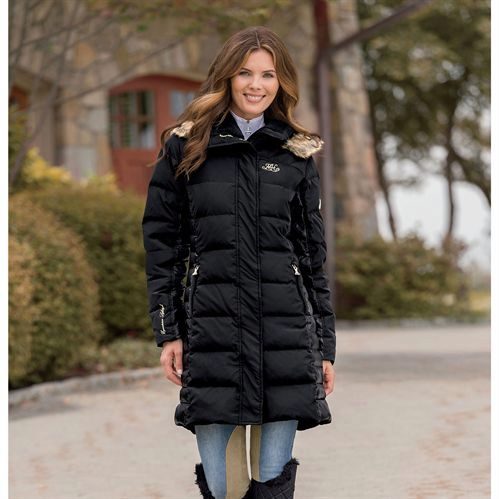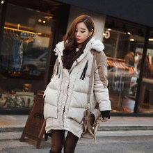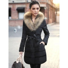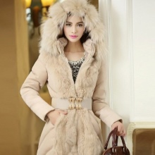 Warm, long jacket on the down, feather or padding polyester, quite long - up to about the knee, more feminine and elegant than the usual down jacket.