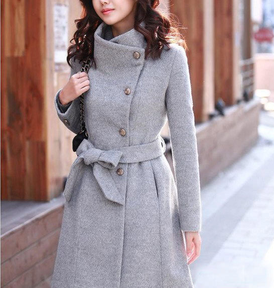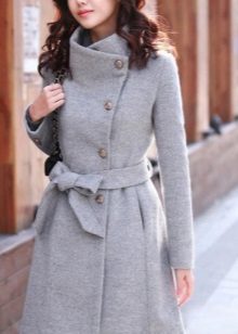 This jacket is made of woolen fabric with a warm lining, the cut resembles a cropped coat; other elements, such as the characteristic collar, belt and button fasteners, make it look like a coat.