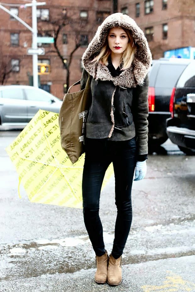 The choice of shoes and accessories is also largely determined by the style of the jacket. Some models look good with rubber boots and sports backpacks, while others are recommended to wear only with boots with heels, elegant bags and gloves.