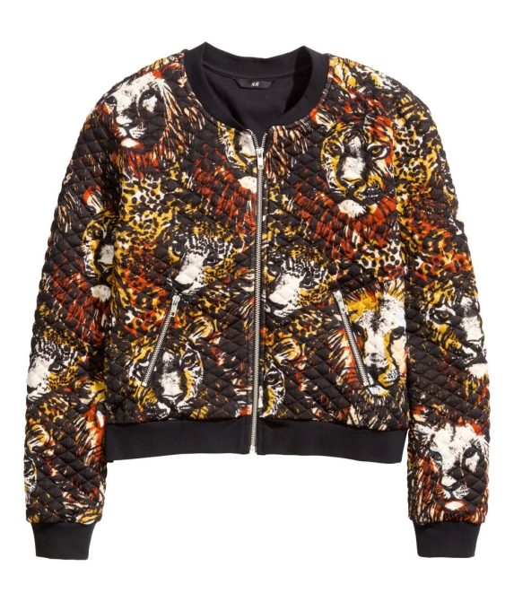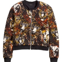 - prints - bombers with pictures are very popular all over the world, both among girls and boys. There are aviator jackets with the image of fire and water, floral motifs, variants in a cage, leopard and other animal colors. The space print keeps itself apart - it was relevant a few seasons ago, but it may soon be back on the shelves;