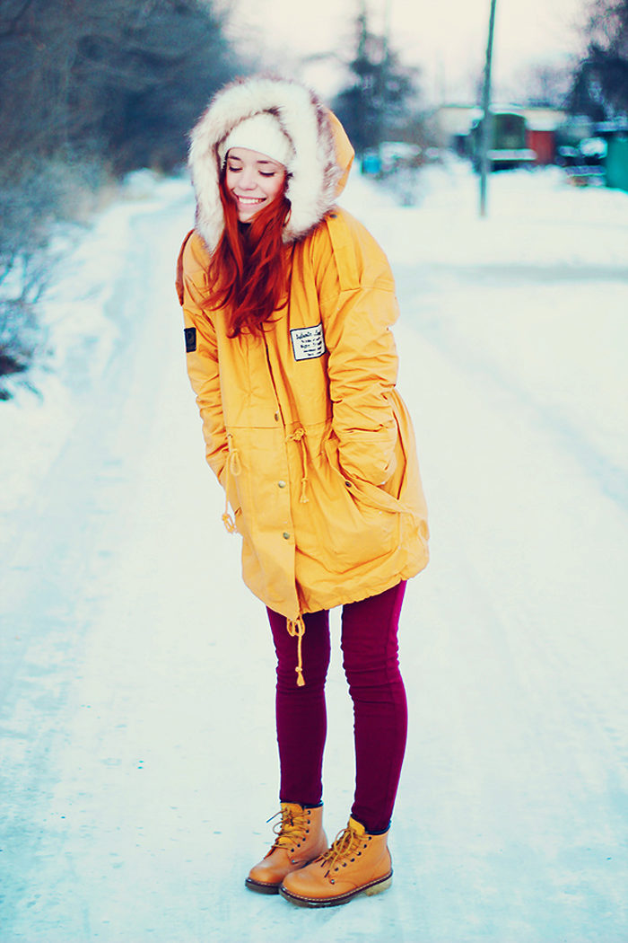 A lot of girls do not like to wear a headdress in winter. A fine alternative to it is a fur-trimmed hood. It emphasizes facial features and gives the appearance of a luxurious look. But it is worth choosing only natural fur, since the artificial will ruin the whole picture, giving the look a cheap and vulgar look.